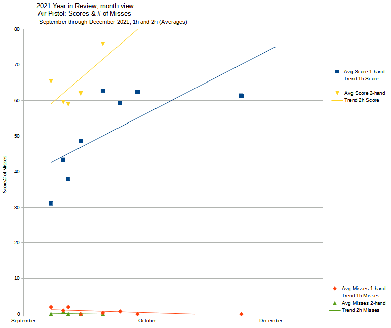 As we moved into October, and as I built up tolerance to holding the air pistol up, I switched to primarily shooting 1 handed.
