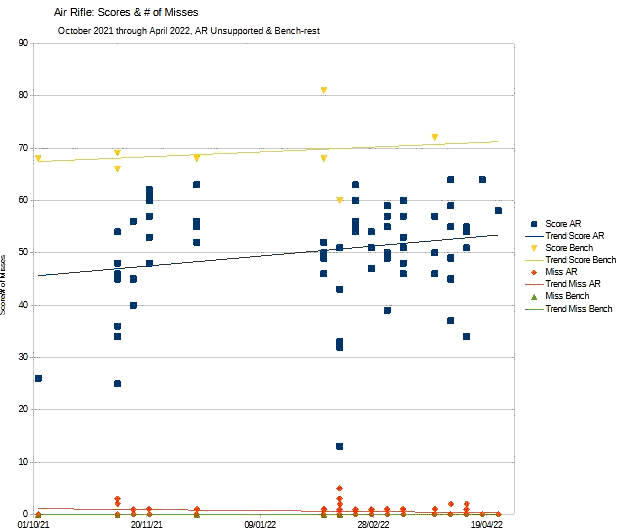 Unsupported, I shot 140 pellets and missed 7, giving a raw inaccuracy of 5%, which is about 2.5 worse than March