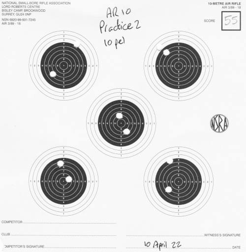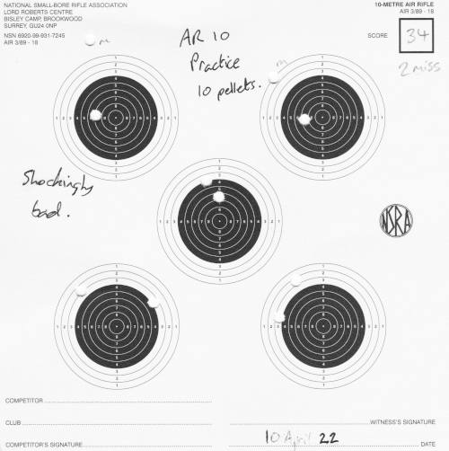 I only shot the air rifle this month, at 10m. I shot unsupported.