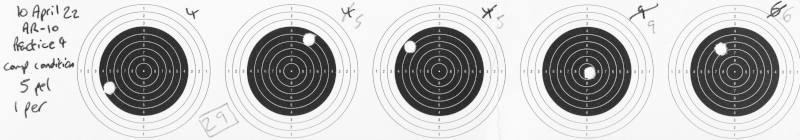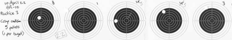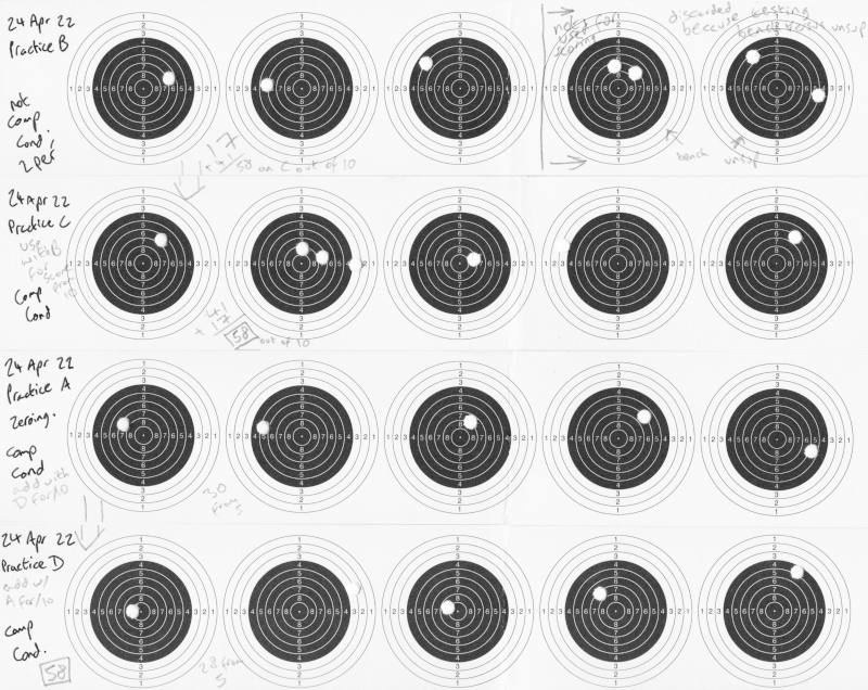 This is a weird one. I did four competition condition cards, but scanned all 4 in together. And on Practice B I wrote for two of the targets, "not used for scoring, discarded because testing bench versus unsup".