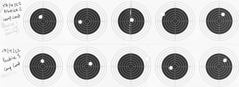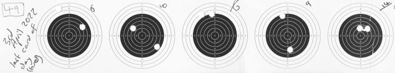 I began transitioning over to the wider card type that's used for events. You have to retrieve the card every shot to slide it over, but it means that all your shots are at a target that's in the centre, rather than being in different places. I can't remember why I transferred to these but maybe I was intending to do an event? The first two cards are on the older square targets.