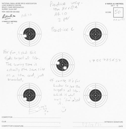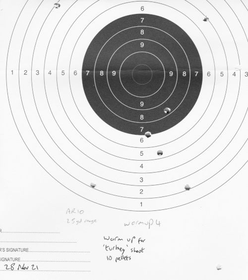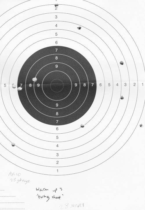 Whilst I've scored them, I won't be including these in my charting data, since they're an odd case. Because of this, where I've shot more than 10 pellets I'll just divide to get a rough score. And I don't have the final, actual shoot card, since I submitted that.
