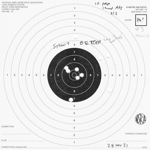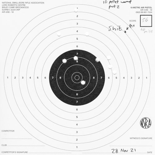 If nothing else, it's nice to see that my skill with the air pistol hasn't particularly decreased by this point, although that's likely to change, since I started focusing heavily on air rifle after this.